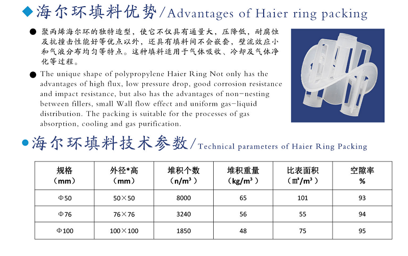聚丙烯海爾環(huán)填料是用聚丙烯注塑成型的一種新型開孔填料,它最早是在國(guó)外被開發(fā)出來的。后來我國(guó)對(duì)這種填料進(jìn)行了研究,并且成功的地開發(fā)出國(guó)產(chǎn)海爾環(huán)填料。